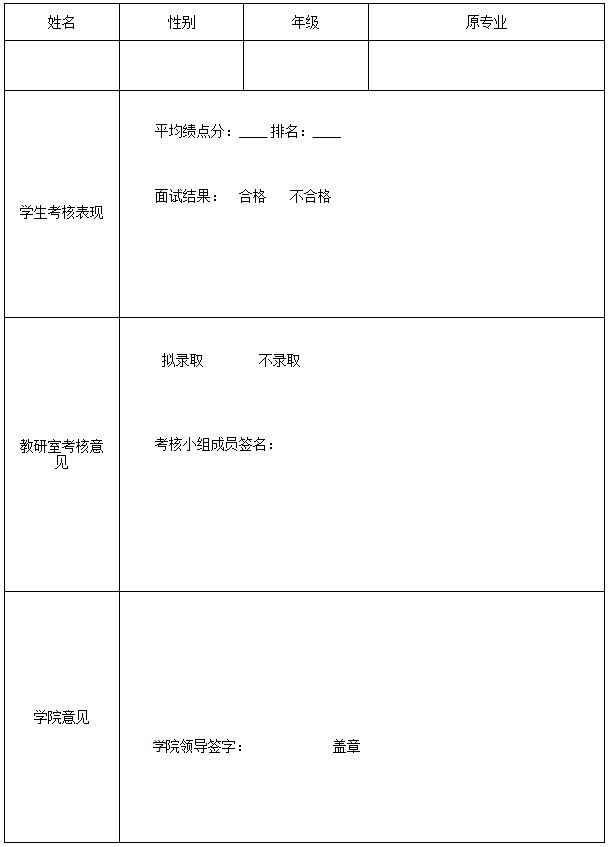 新闻传播学大类专业转入学生考核表