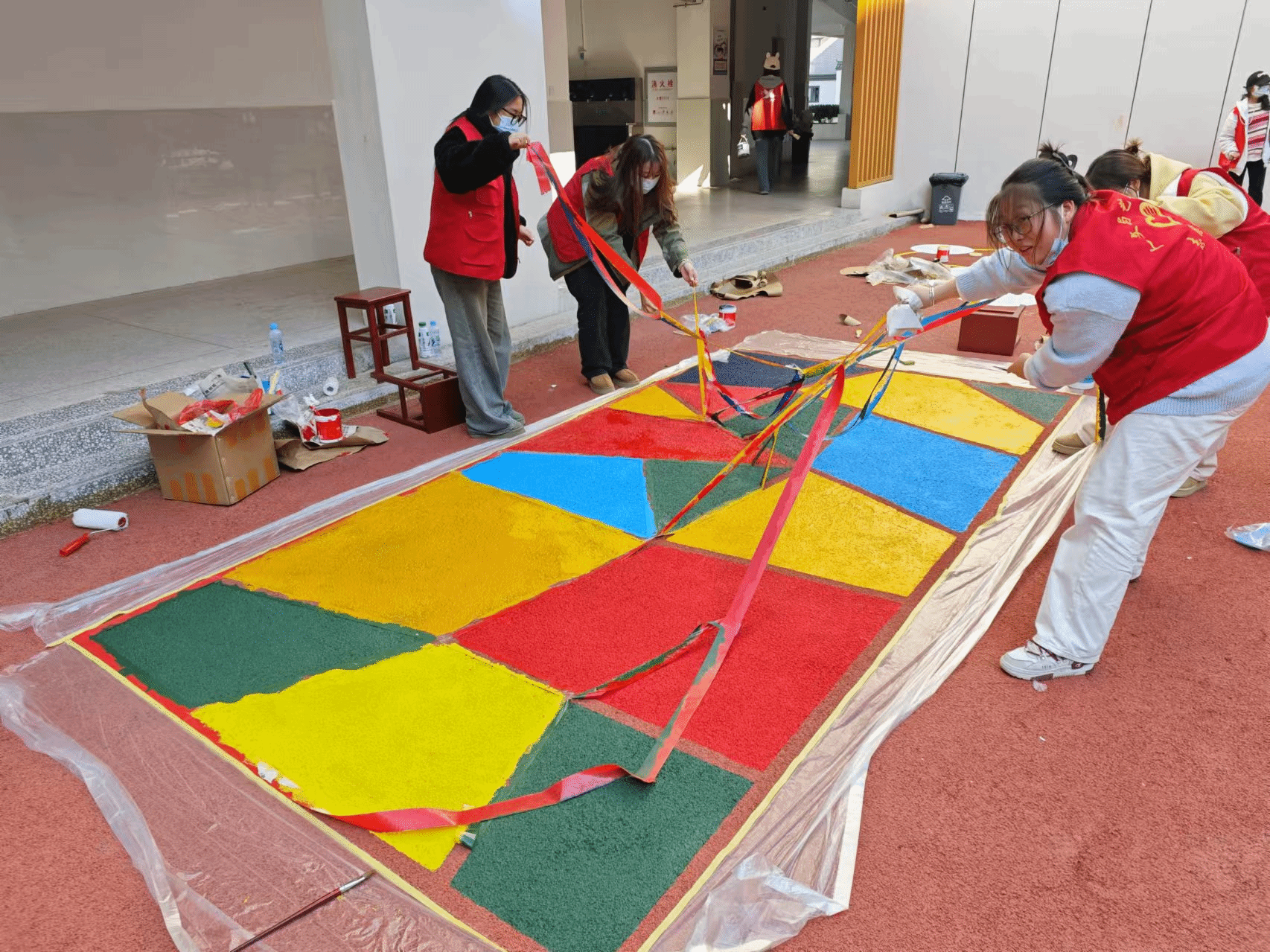 本次主题党(团)日活动主要是对书院小学课外活动区域进行绘制,在前期与老师的沟通下,党员团员进行了现场测绘,根据实际情况确定合适的彩绘图案。活动当天,分工合作,充分发挥自己的专业技能与创意,通过拉卷尺、量尺寸、定内容,以地面为画布,用画笔勾勒出一幅幅生动有趣的图案,最终将有关红色文化、节气传统文化、防溺水知识等内容全部绘制完成,从可爱的卡通人物到美丽的自然风光,每一幅绘画作品都凝聚着师生们的智慧与汗水。