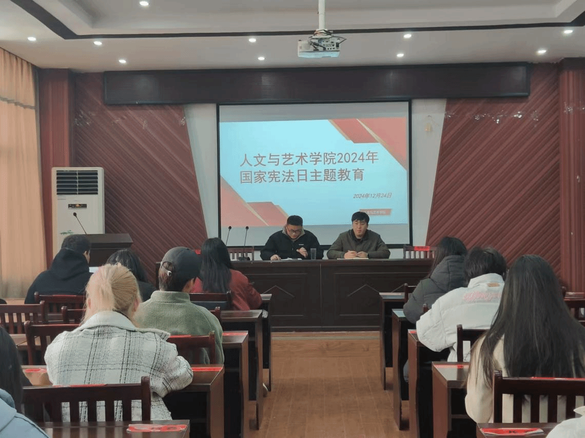 12月24日,人文与艺术学院在艺术楼A230召开了学生干部会议,会议以“弘扬宪法精神,共建法治校园”为主题。此次会议由辅导员马浩哲主持,辅导员兰龙焱以及全院各班级班长、团支书参加,共计50余人。