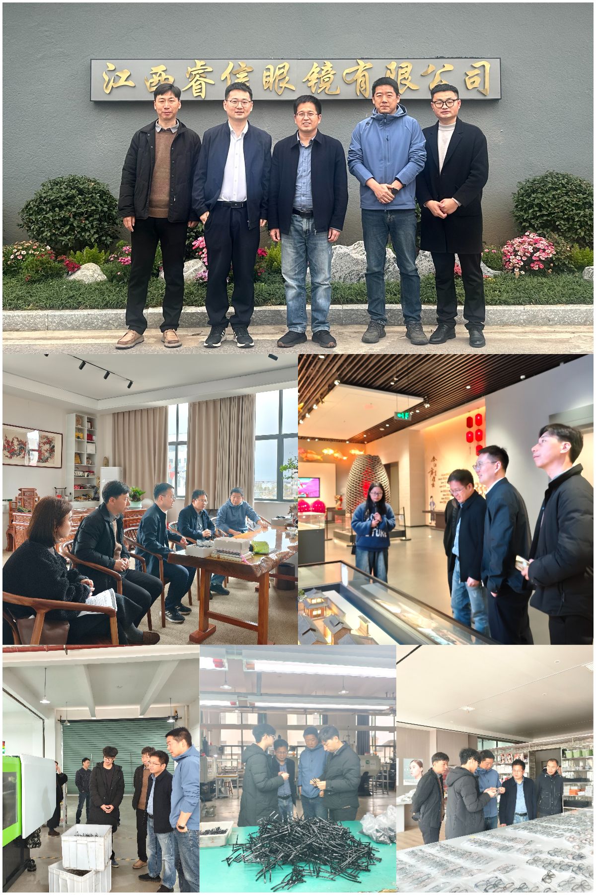 在余江区产业协会及江西睿信眼镜有限公司,双方围绕余江眼镜产业发展、人才需求、实践教学、校企合作等深入交流,重点就眼镜设计大赛、赛教结合、专业生产实习实践等达成合作共识,推动专业教学与产业实际深度融合。学院一行实地参观眼镜生产链及成品展示,详细了解生产工艺与设计需求,随后前往余江区博物馆参观学习。