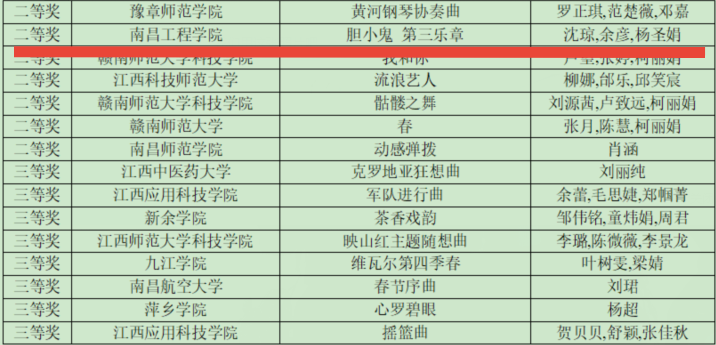大学生艺术展演活动是由教育部门主办,规格较高、规模较大、影响较广的大学生艺术盛会,每三年举办一届。本次展演受疫情影响,赛制不同以往,采用了录制节目视频送审的参赛形式,吸引了江西省众多高校前来角逐,省内音乐学专业先进单位悉数参赛,竞争异常激烈。(文/图 杨圣娟)