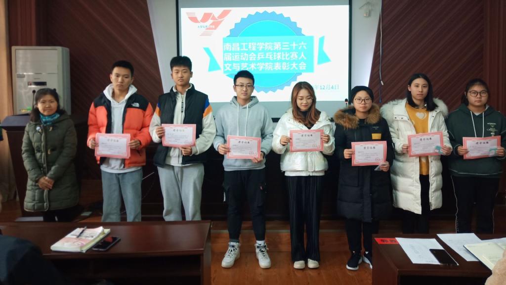 南昌工程学院第三十六届运动会乒乓球比赛落下帷幕,我院乒乓球队在杨可儿 ,莫吕文等人的带领下 ,取得了女子第一名,男子第四名的历史佳绩。为了更大程度地培养我院学子团结进取、勇于拼搏的优良品质,我院于2019年12月4日中午在艺术楼A230会议室开展了南昌工程学院第三十六届运动会乒乓球比赛人文与艺术学院乒乓球赛表彰大会。我院团委书记蒿佳杭,学生会主席徐祎璠,我院学生会体育部全部部员以及各班级主要班级干部参加了本次表彰大会。