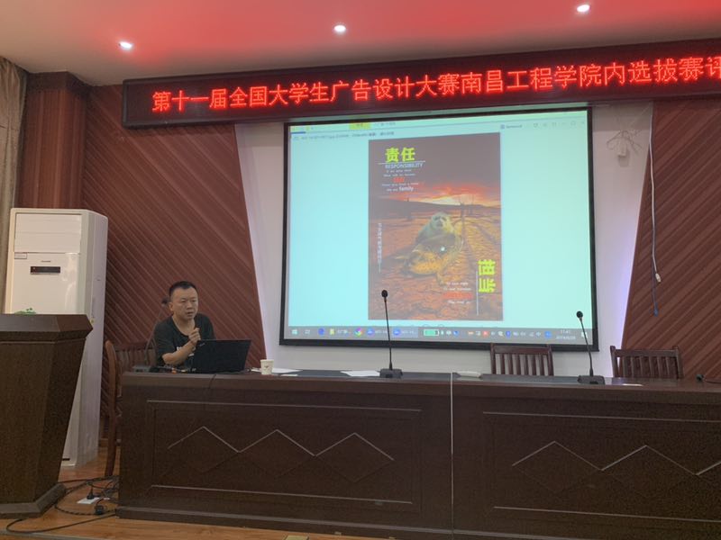 6月26日上午,南昌工程学院第十二届全国大学生广告艺术大赛评审活动于艺术楼A230举行。此次比赛由丁蓓蒂老师负责,担任本次大赛的评委老师有视觉传达教研室主任陈檀,周行,吴初平等相关专业老师,和学生评审5人。