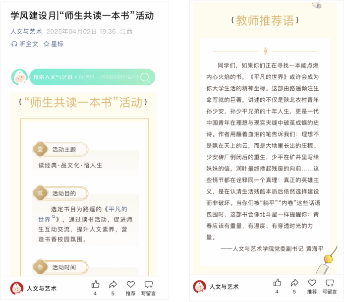 人文与艺术学院开展“师生共读一本书”活动