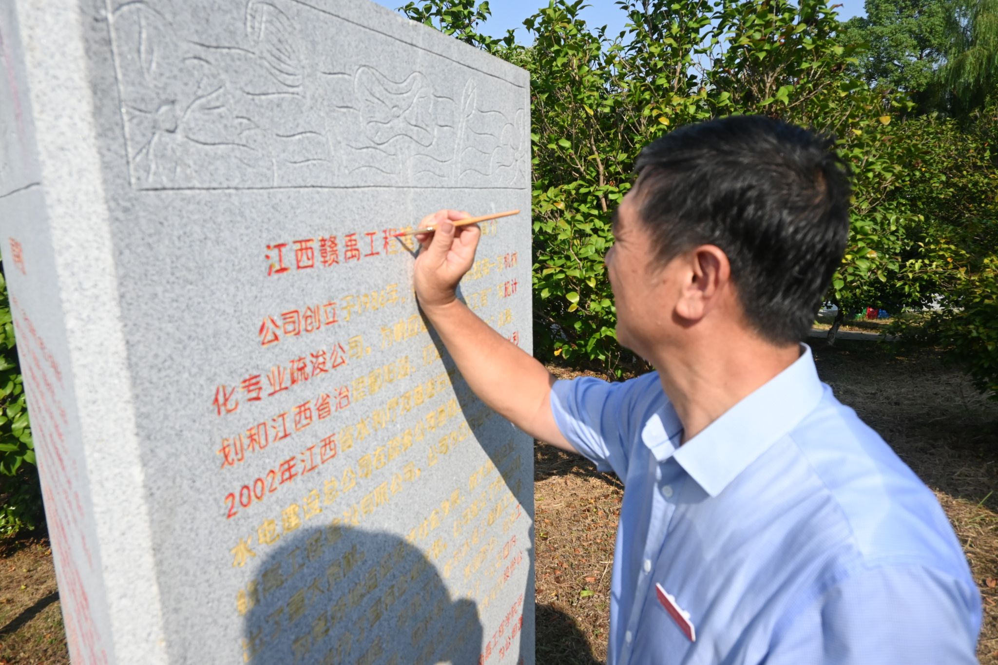 吴泽俊以“赣禹亭”的捐建历程为主线,结合亭碑铭文与亭联意境,从历史治水智慧、当代水利精神、青年使命担当三个维度,为师生上了一堂深刻的水文化思政课。他指出,“赣禹亭”不仅是一座有形的建筑,更是校友情系母校、感恩奋进的“具象化符号”。活动中,师生怀着崇敬之心,一丝不苟地为“赣禹亭”碑文字迹进行描红,在一笔一画的专注中体悟先辈治水的坚韧不拔与校友反哺的赤子情怀。