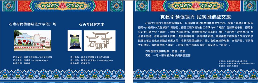 人文与艺术学院视觉传达专业陶海龙、白慧敏、李菲菲、陈福欣等同学,在老师的指导下,深入挖掘石崇村的畲族文化,笔尖幻化文旅融合发展之花,完成了石崇村民族团结进步广场、畲族文旅IP形象、文创产品、石头背大米包装、畲族墙绘等项目。相关设计将于“五一”小长假期间全面推广,助力石崇村文旅融合推动乡村经济发展,促进民族团结进步。