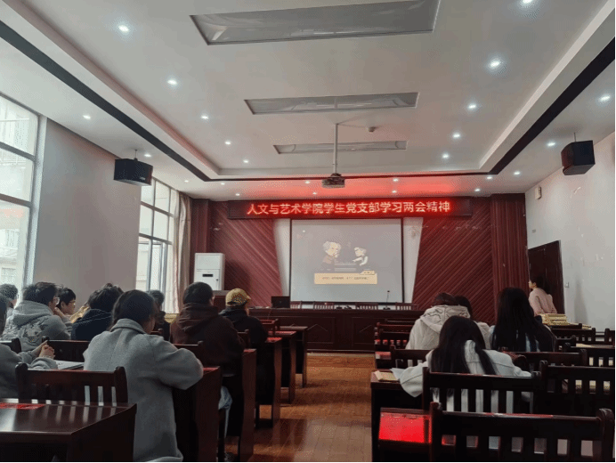 3月13日,人文与艺术学院党支部召开党员大会,认真学习全国两会精神,重点关注习近平总书记出席全国两会纪实。会议由人文与艺术学院组织员蒿佳杭主持,支部书记兰龙焱和马浩哲出席。