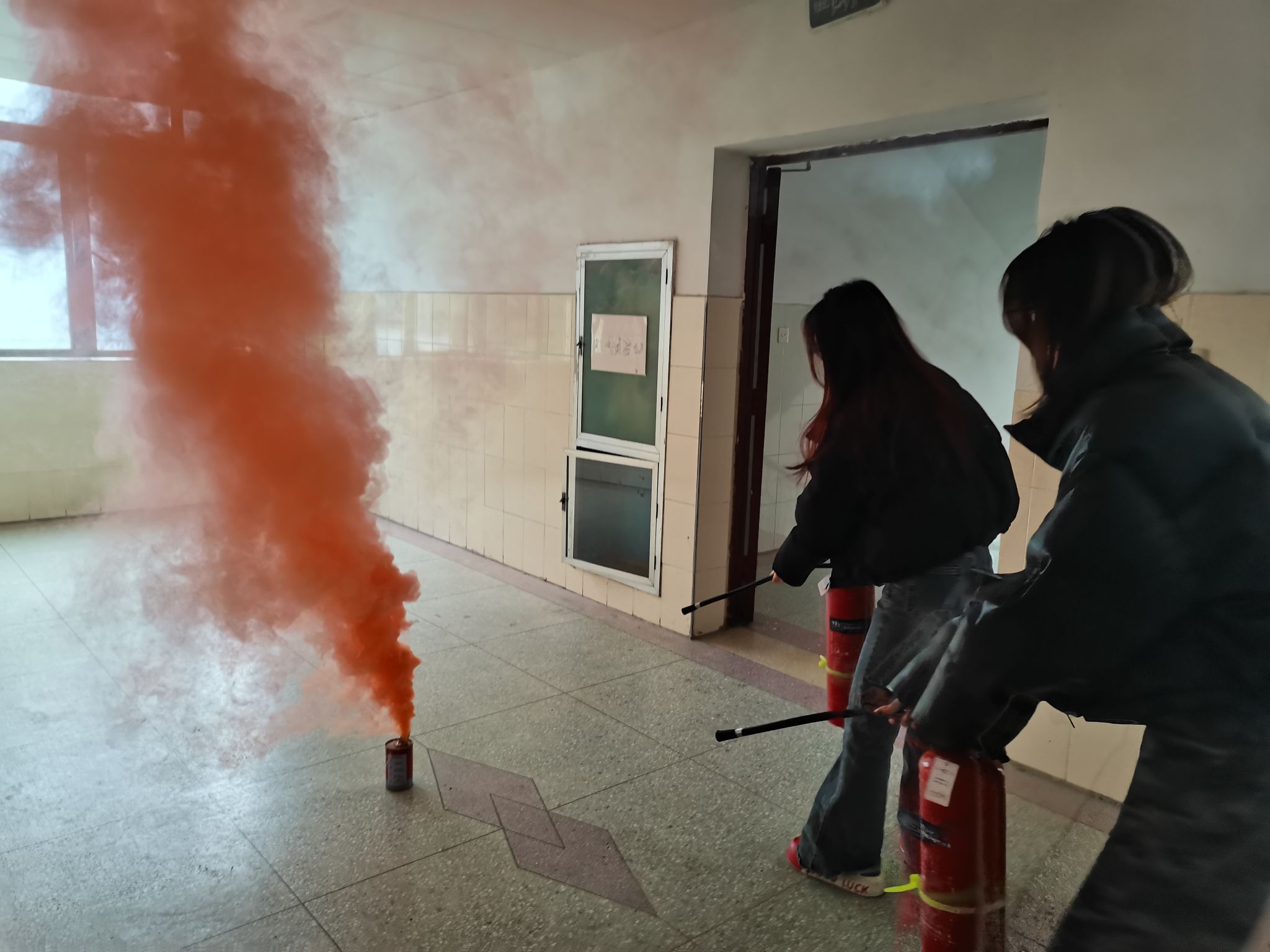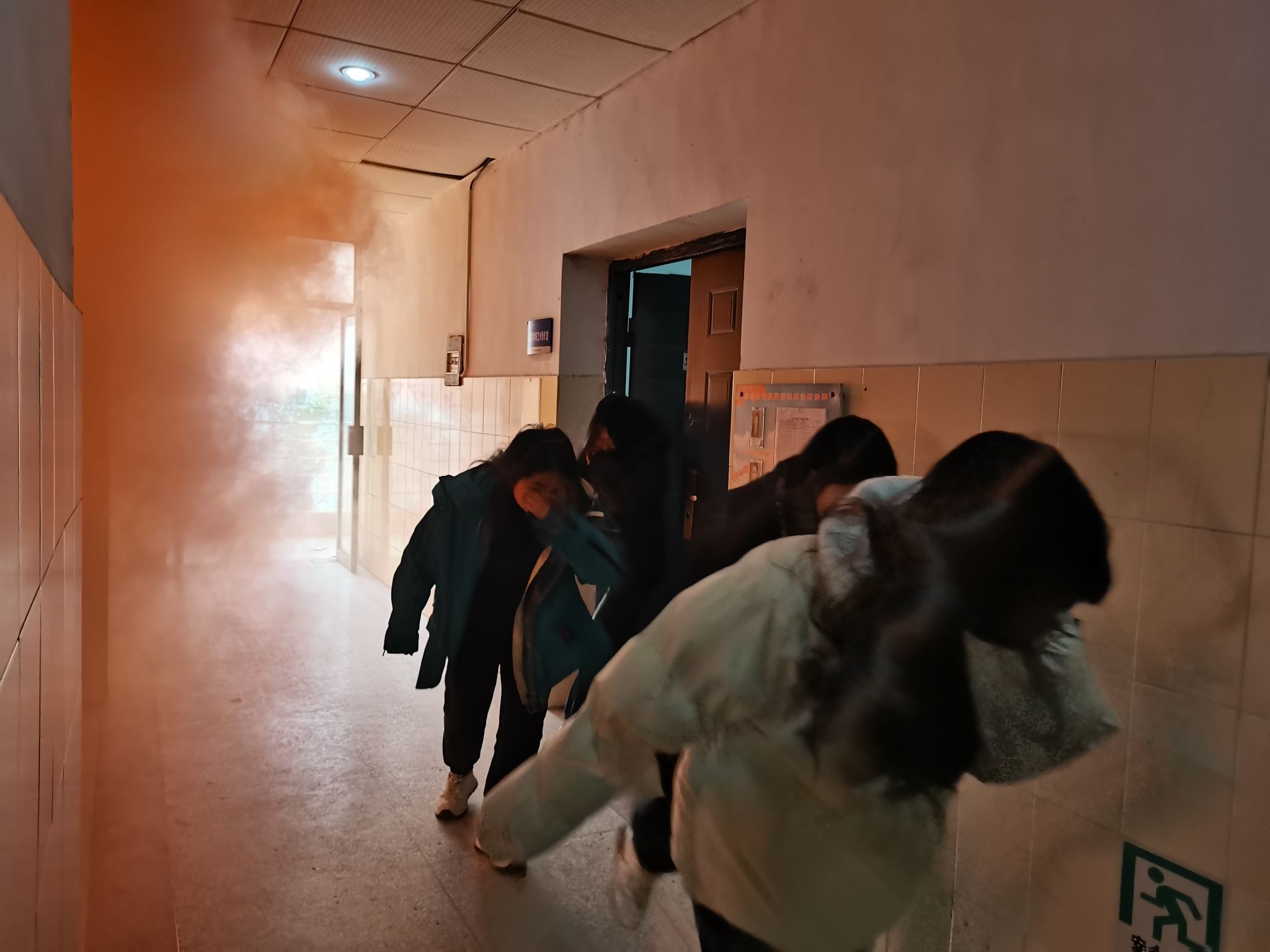 此次演练以无脚本的形式进行,随着急促的警报声响起,宿舍楼内模拟发生火情,学生在引导员的指挥下,捂住口鼻,弯腰低姿,迅速有序地从安全出口撤离至安全区域。整个疏散过程紧张有序,所有人员安全撤离完毕。本次演练增强了学生消防安全意识,提升了应急自救互救能力。(文/马浩哲 刘源漫 图/赵文敏 刘薇 程丽 延焱斐)